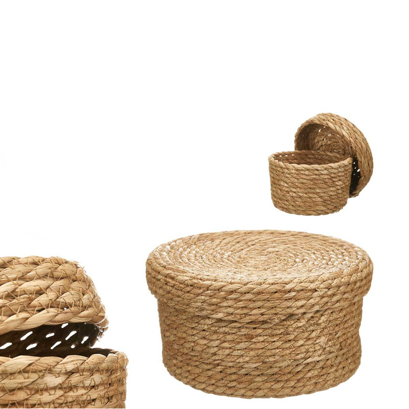 Adicione um toque natural e elegante à sua decoração com o nosso cesto redondo com tampa. Feito à mão a partir das fibras de junco, uma planta aquática fibrosa e flexível, também conhecida pela sua resistência, este cesto combina beleza, funcionalidade e sustentabilidade. Cada peça é única, feita artesanalmente, trazendo um charme rústico e autêntico para qualquer espaço. Aposte no artesanato sustentável e dê um toque especial à sua casa!